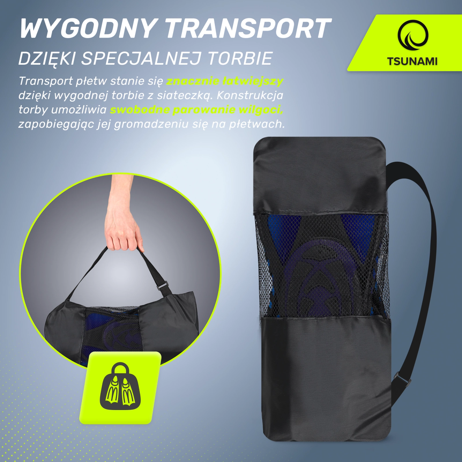 - Z płetwami do nurkowania TSUNAMI można przemieszczać się w wodzie i wynurzać na powierzchnię znacznie szybciej, co zwiększa poczucie bezpieczeństwa.