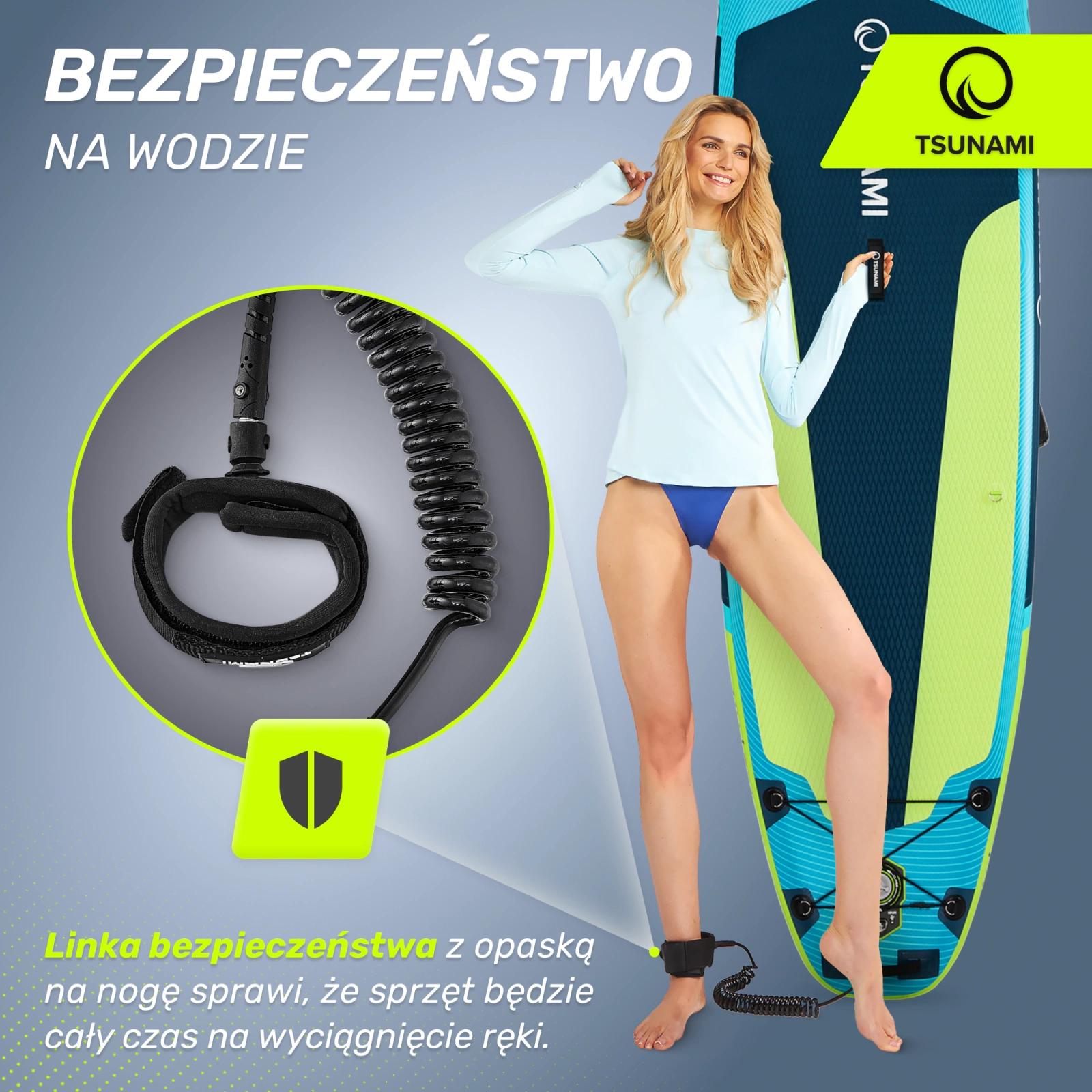 Co zawiera zestaw?Wybierając deskę do pływania SUP PRO TSUNAMI, w zestawie otrzymasz także plecak do transportu, pompkę, 3 stateczniki, linkę bezpieczeństwa z opaską na nogę, zestaw naprawczy, podwójne wiosło. Oznacza to, że przygodę z wiosłowaniem rozpoczniesz bez żadnych dodatkowych kosztów.