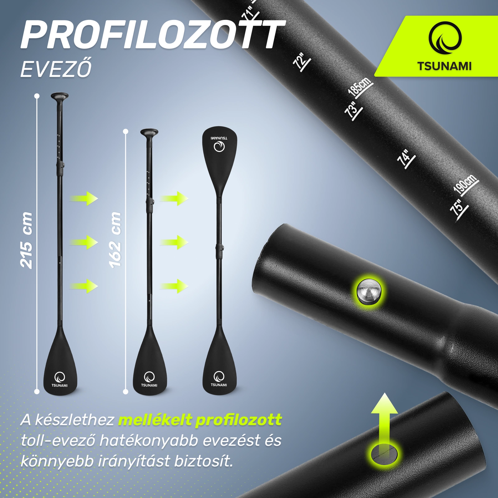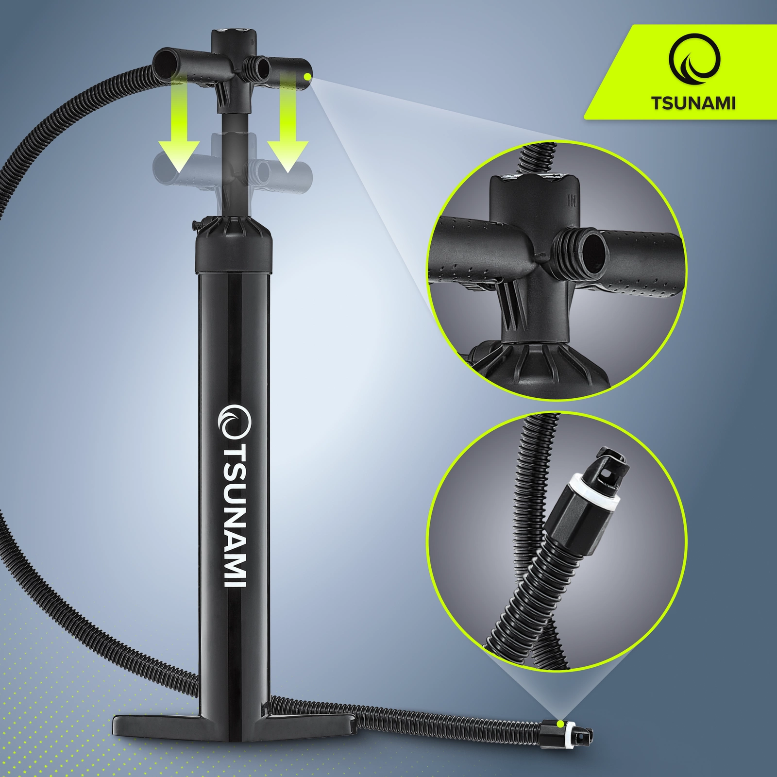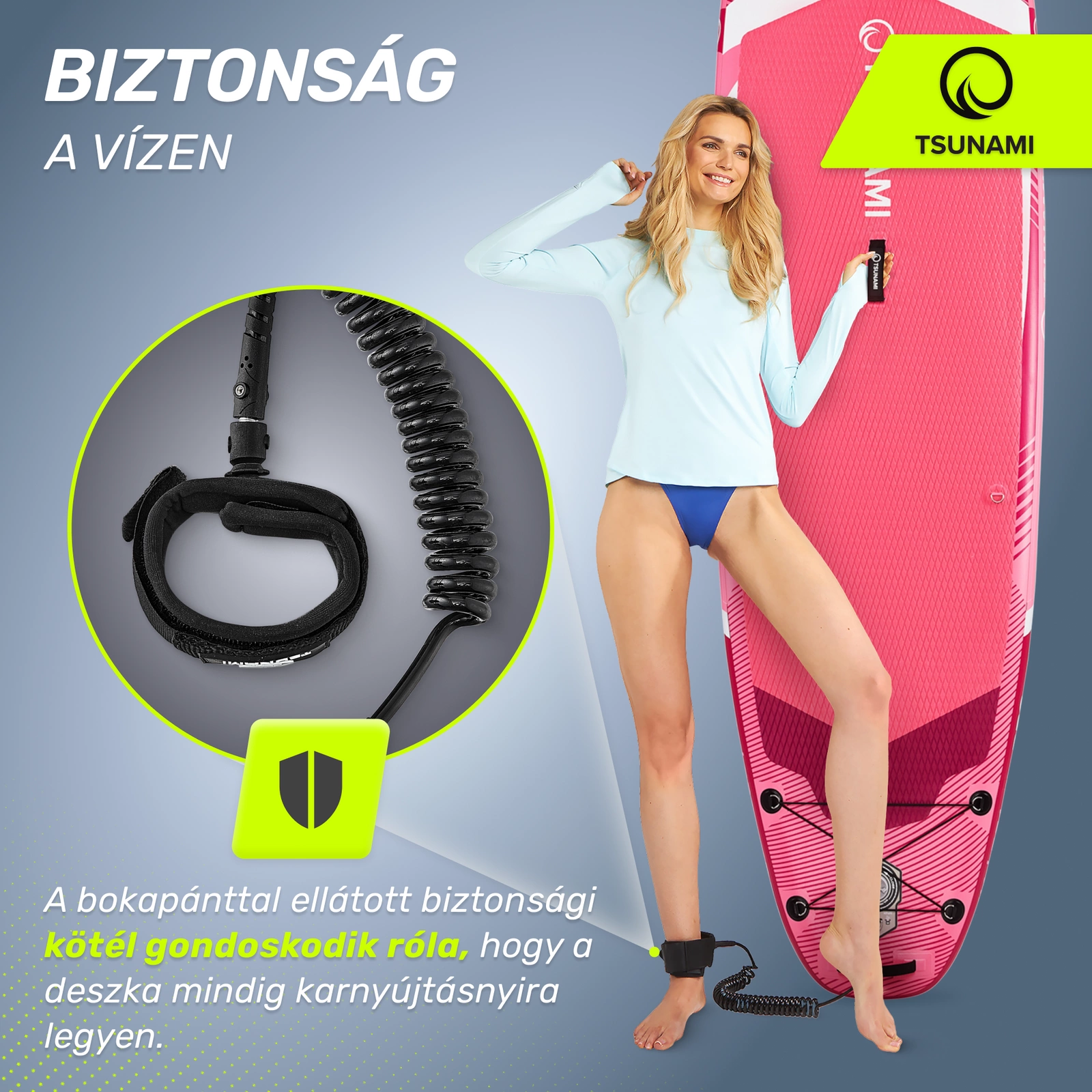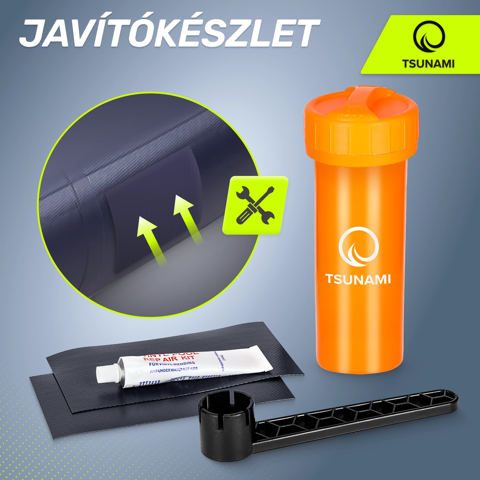 Co zawiera zestaw?Wybierając deskę do pływania SUP PRO TSUNAMI, w zestawie otrzymasz także plecak do transportu, pompkę, 3 stateczniki, linkę bezpieczeństwa z opaską na nogę, zestaw naprawczy, podwójne wiosło. Oznacza to, że przygodę z wiosłowaniem rozpoczniesz bez żadnych dodatkowych kosztów.
